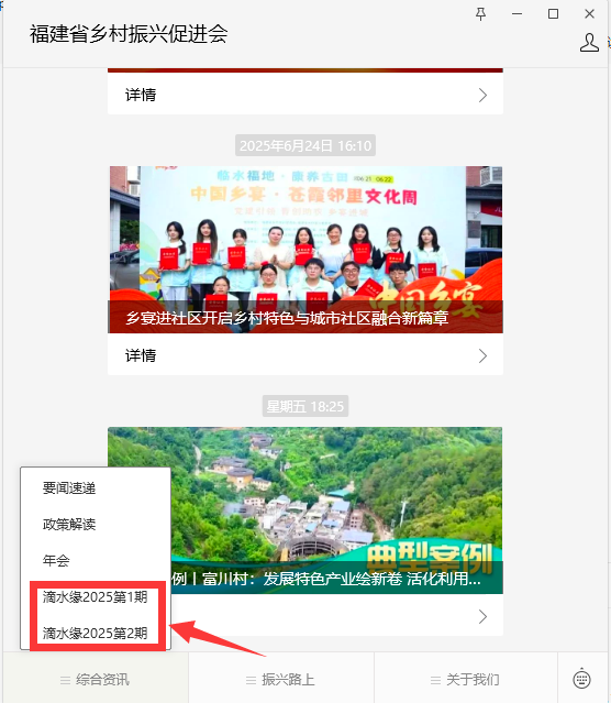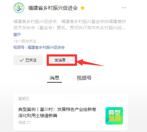 在“福建省乡村振兴促进会”官微菜单内选择阅读