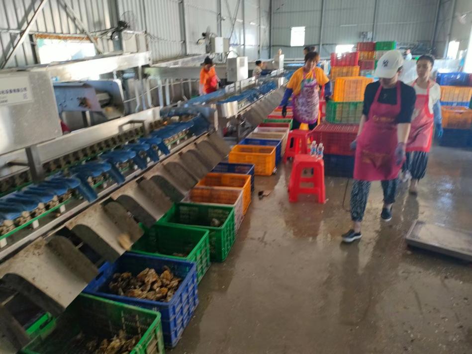 2019年,仅有3户养殖户组成一个联合体试养50亩。到了2020年,这样的联合体就有五个,养殖面积有120亩,每亩产值可达26000元左右,每亩纯收入有14000多元,且成品生蚝的肉质和口感均为上乘,颇受客户青睐。2022年,陇头村生蚝养殖投入约9000万元,养殖面积扩大到5500亩。经过几年摸索,生蚝养殖成了陇头村的又一支柱产业,目前已进入规模化阶段,从育苗、养殖到加工全产业链初具规模。