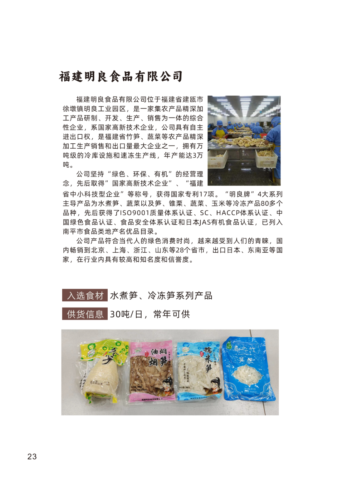 南平幅员辽阔,是福建省农业大市,生态优良,资源丰品,农产品品种多、品质好,素有“中国竹乡”、“南方林海”、“福建粮仓”之美誉。为挖掘和开发一批特色优质食材,促进优质特色农产品转化,更好的开拓销售市场,助力乡村产业振兴和农民增收,2023年11月南平市乡村振兴促进会联合市商务局、市农业农村局、市市场监管局、市供销社、市妇联等6个部门,在全市首次开展寻找“武夷味·好食材”活动有93家生产企业和种养基地申报,依据主办方制定的“武夷味好食材”评选管理办法,组织专家评委采取集中与分散相结合的方式,规范评审,确定首批入选“武夷味·好食材”的企业(基地)29家。