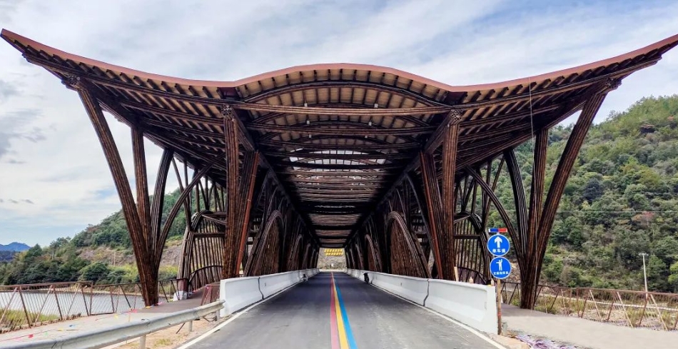 在去司前干坑的路途中,调研组一行察看了寨里镇桃林村与大洲村交界处的光泽县武夷国家公园西大门的“特色竹桥”和接待中心以及西大门核心区道路等基础设施项目建设情况。