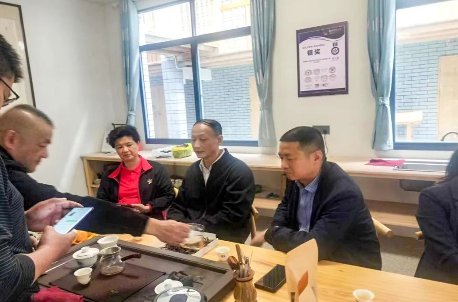 在司前乡干坑村觉农制茶厂,调研组一行与茶企负责人座谈交流,了解茶产业发展情况,并指导白茶制作工艺和技能。